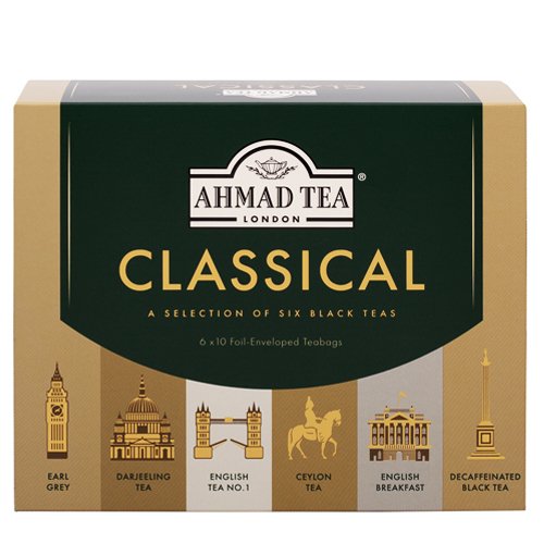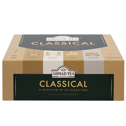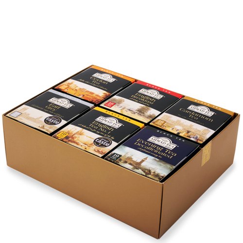 Klasiskā kolekcija ar 6 dažādām melnām tējām: Angļu tēja No 1, Darjeeling, Earl Grey, Ceilonas tēja,Menlā tēja bez kofeīna.Tējas maisiņi ar aukliņām individuālā folijas iepakojumā, ļauj pilnībā saglabāt tējas garšu un aromātu. Uzlējumu izturēt 3-5 minūtes