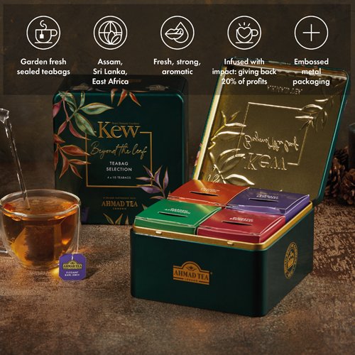 Šajā komplektā ir apvienotas četras tējas zināšanu paaudzes ar Kew Gardens skaistumu un mantojumu. Mūsu Beyond the Leaf klāsts jūs ielūdz izbaudīt ko vairāk par tikai tēju. Iedzeriet malku un izbaudiet gadiem ilgas klasisko maisījumu pilnveidošanas darba augļus. Tajā pašā laikā novērtējiet dabas skaistumu un augus, kas to padara iespējamu.