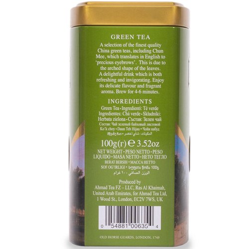 Для создания этого купажа наши чайные мастера выбрали листовой чай сорта Chun Mee. Чун Ми переводится как "драгоценная бровь", что видно по скрученному виду аккуратно свернутых высушенных листьев. Мы поставляем Чунь Ми с Желтых гор Восточного Китая, района, который славится особой разновидностью небольших чайных кустов и минимальной обработкой листьев. Особенность этого сбора проявляется в мягком ореховом аромате, сладковато-дымных травяных нотах. Мы в Ahmad Tea считаем, что качественный чай должен говорить сам за себя, и этому изысканному купажу есть что сказать. Это 100% натуральный листовой чай премиум-класса, в котором нет ничего лишнего. Благодаря высокому содержанию антиоксидантов и других питательных веществ, этот чай является прекрасным чаем на любой вкус.