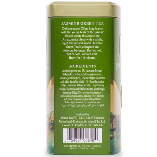 В красивой металлической банке вы найдете 100 граммов (г) рассыпного зеленого чая Jasmine Green Tea. Для сохранения свежести листовой чай упакован в фольгу. Декоративные чайные банки – это не только идеальный способ хранения чая, но также своеобразное украшение традиционной церемонии чаепития. На этой чайной банке изображена картина Уильяма Джеймса «Темза под Вестминстерским мостом» –идеальный подарок для ценителей чая.